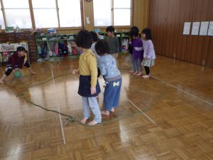 今度は、線にぶつからないように、ギグザクジャンプ!