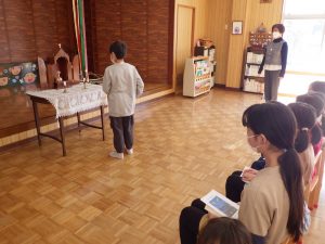 2月の日曜学校 2025/02/16 2024年度最後の日曜学校は 幼稚園でお礼拝 分級では体をいっぱい動かして遊びました 2025年度は4月20日のイースターから始まります 今年度もたくさん一緒にお祈りしましたね 来年度も待っていますよ 得意なもの発表会 雪あそびのお絵描き❄