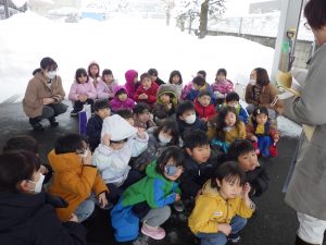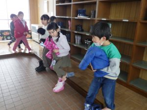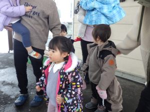 寒さの中での避難の仕方を練習してみました。