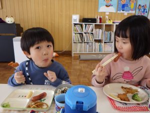お楽しみメニューの給食も一緒に食べて、