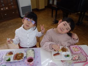 お楽しみメニューの給食も一緒に食べて、