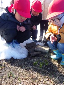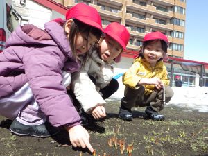 園庭で一足先に春を見つけましたよ✨