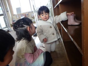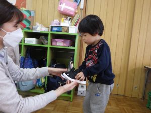 お兄さん、お姉さんに見守られながら自分の靴を下駄箱に入れたり🎵
