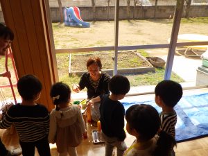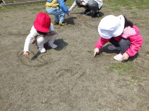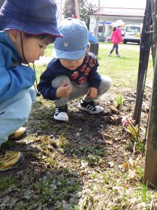 何かをジーっと見つめ、「なんだろう?」「ピンクのおはなさいてるね✨」「カワイイ💕」と子どもたちの可愛い会話が聞こえてきましたよ🎵その光景にホッコリしました😊