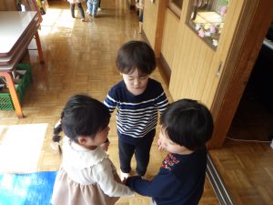 お友たちと手をつないで、「なにしてるの~?」と他のお部屋にも行ってみましたよ😊