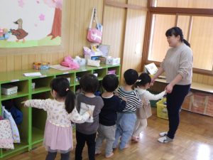 昨日入園式を迎えたおひさま組さんは、今日から一人で登園しました♪