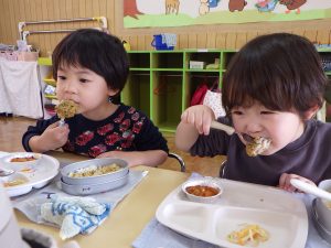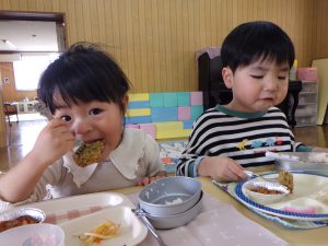 いっぱい遊んでお腹はペッコペコ!大きなお口で「あぁ~ん!」「おいしいね💕」とパクパク😋