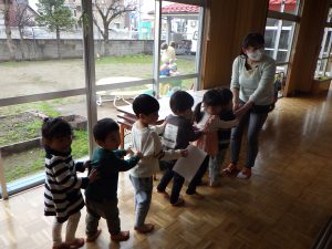 みんなで体操した後は、おひさま組さんはお部屋へ~