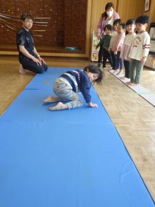 今年度からは、お友だちや先生と体操教室に参加するおひさま組さん。