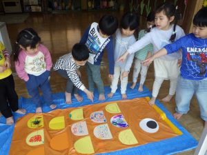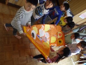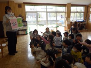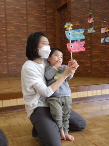 鯉のぼりのお話を聞いたり、こどもの日のクイズをしたり、歌を歌ったり♪