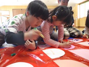 一緒に遊んだこいのぼりさんの鱗にもお絵描きもしてみました💡それぞれのクラスのステキなこいのぼりが完成✨