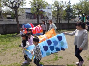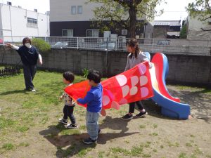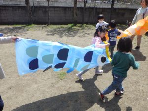 お天気も良かったので、お友達と協力してこいのぼりさんをおよがせよう!