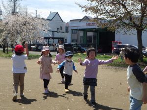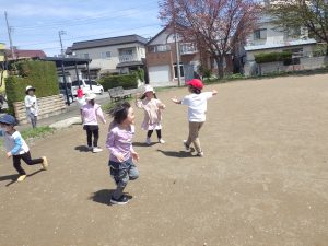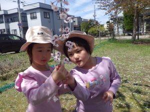 風に舞っている桜をキャッチ!しようと「待て、待てー」と追いかけたり、