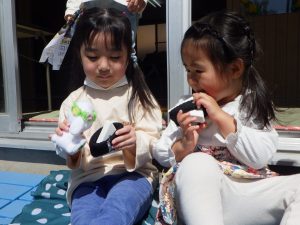 お天気も良かったので、窓際でピクニックごっこ🍙