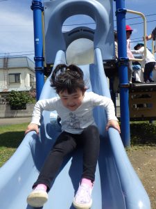 遊具の陰や、木の後ろに上手にかくれんぼしたりする子ども達😊