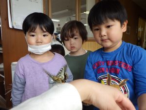 お休み明けの今日、登園すると・・・何と‼きれいなアゲハちょうが2匹誕生していました🦋✨