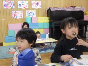 お昼には幼稚園の畑で収穫した『アスパラ』を少しずつ食べてみましたよ。