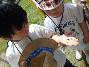 砂場で見つけたんだよ。大きくなったら何になるのかなぁ…。
