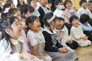 幼稚園でのお祝いは、緊張が解けみんないいお顔😊
