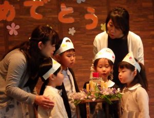 5月生まれの先生も一緒にロウソクをフー🕯️