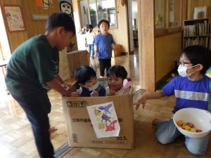 運転士さんが「1つえらんでねぇ~」と果物をプレゼント🍎🍓🍊