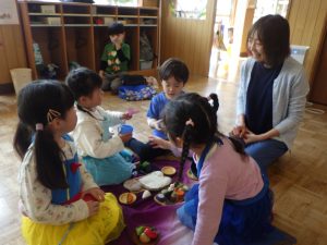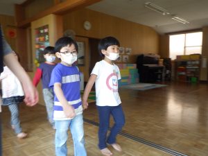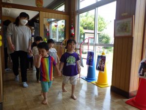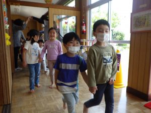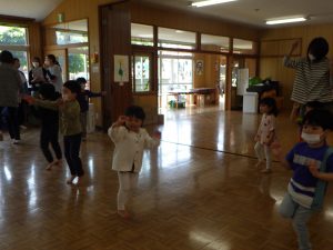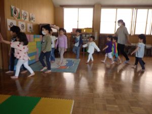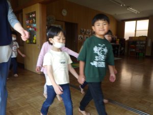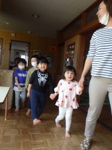 「あるこ~あるこ~♪」とお友だちと手をつないで園内をお散歩😊