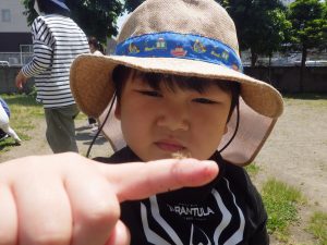 「みてぇ~🎶カマキリのあかちゃん✨」と、とっても小さいカマキリのあかちゃん発見‼カマキリの赤ちゃんもいっぱい食べて大きくなぁれ~!