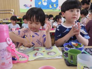 お昼は大好きなお弁当を食べて元気百倍!
