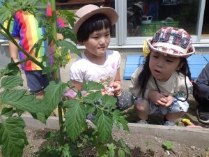 嬉しくて他のクラスのお友達にも「トマト緑になってるんだよ!」と教えてくれていまいした💕