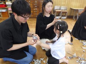 ギュっギュっと小さく小さく、丸めてボール作り!「じぶんでやる~」と頑張っていたお友だちもいましたよ♪