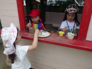 園庭にきれいに咲いているバラの花びらを使ってお料理作り🍽️