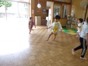 たまひよさんも一緒に歩いやり、止まったり、眠ったりなどピアノの曲に合わせて、リズム遊び🎶みんな良いお耳でしたよ✨本当に眠ってしましそうなお友だちも・・・😆