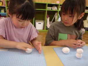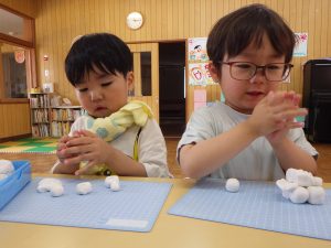 「どうやってまるつくるの?」とお友だちに聞きながら丸めたり♪