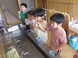 ちゅうりっぷ組さんでは、食後の歯磨きが始まりました🪥