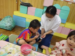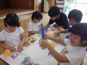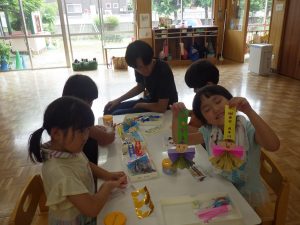 ほしさんははさみを使って七夕製作、