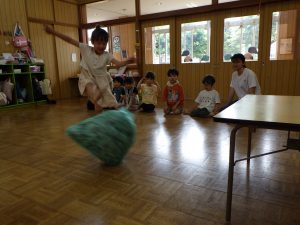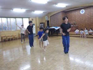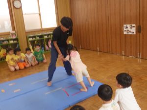 かっこいいお兄さん達をお手本に一人ずつ入って跳んだら、