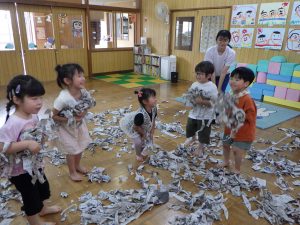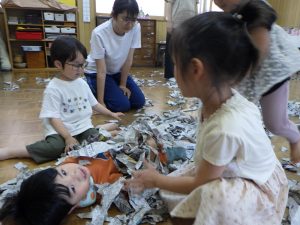 おひさまさんは新聞紙をびりびり~!