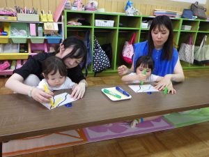 さっそく、お母さんと一緒にペンを持ってヌリヌリ🖊