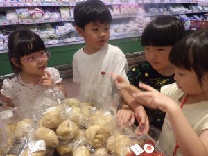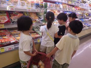 メモを頼りに、自分達のごはんの材料を探していきます。