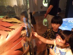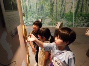 チームに分かれて、白神についての展示ホールを回りましたよ。おもしろいしかけがいっぱい❕