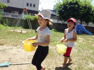 さて、ちゅうりっぷ組を先頭におひさま、ひよこ組はおでかけ