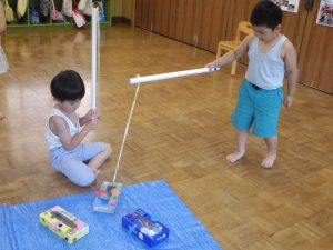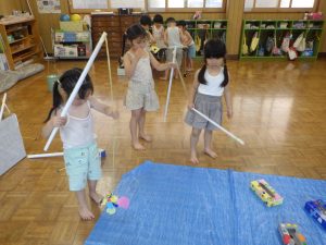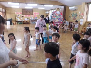 今日は幼稚園の中でも「ヤ―ヤードー!」