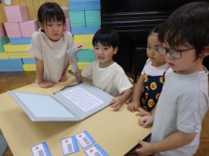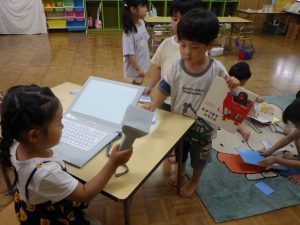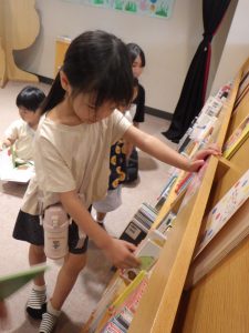 図書館っごっこで「この本かしてくださ~い」