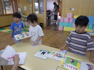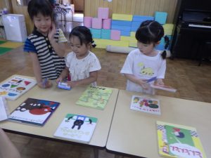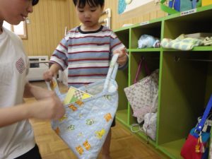 絵本バックの中に、絵本を入れる練習もしてますよ。