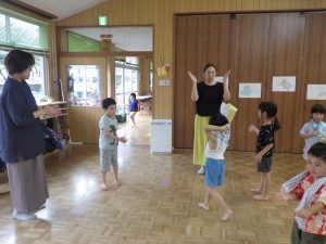 ちゅうりっぷ組のお兄さんがクラスで踊っているダンスを教えてくれました。
