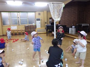 今日のおひさま組は、ちゅうりっぷさんと一緒に玉入れで