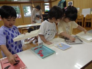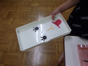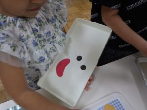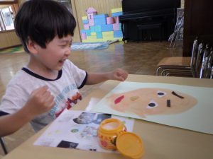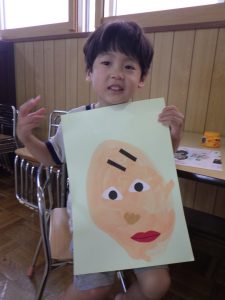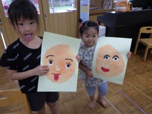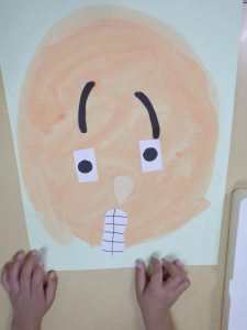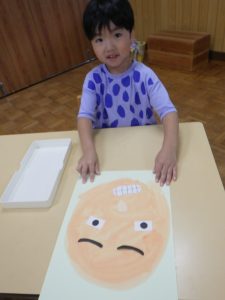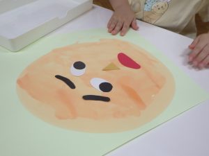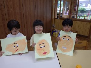 お顔の本を見たり、先生の作ったいろんな表情を見て