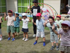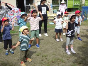 園庭でもノリノリでダンスです♬