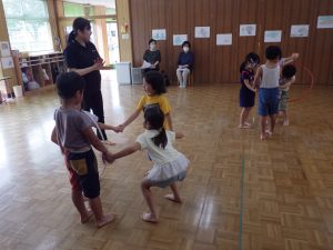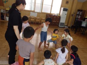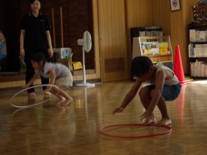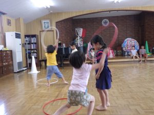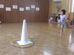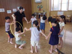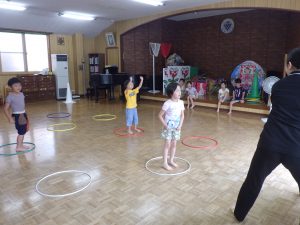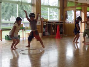 フープを使った楽しい遊びを色々考えてきてくれましたよ。