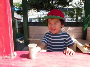 いらっしゃいませ~!ストロー付きジュースだよ☆